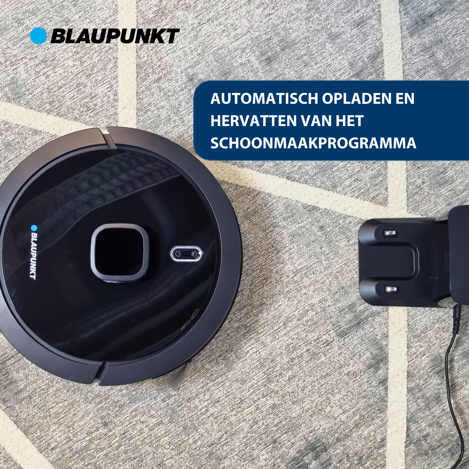 Een groot voordeel van de Blaupunkt Bluebot Precision is zijn slimme navigatiesysteem. Hiermee kan hij perfect terugkeren naar zijn startpunt na het voltooien van zijn schoonmaaktaak. Na het schoonmaken kan hij automatisch terugkeren naar dit station om zich weer op te laden voor de volgende schoonmaakbeurt.